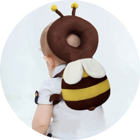 This little bee backpack has literally been a life saver. My 10 month old has been wearing it consistently for the past month and a half and it has saved him from smacking the back of his head on our tile floors too many times to count. He was a little interested in trying to pull it off when we first put it on, but now he wears it all the time and doesn’t seem to even notice it is there. Such a simple, cheap, and effective solution for a common baby issue.