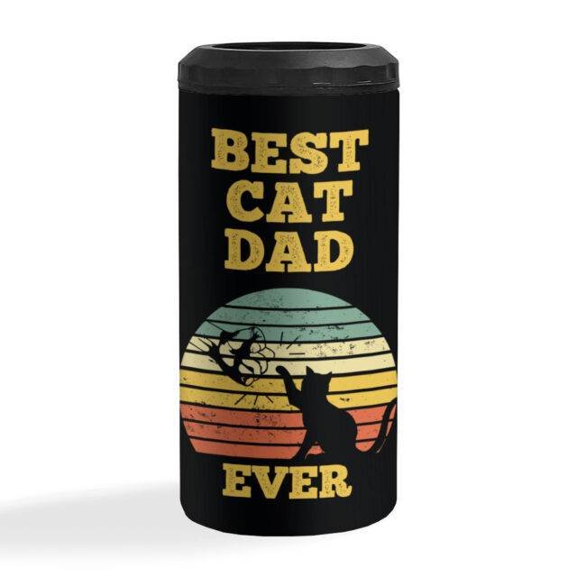 Best Cat Dad Ever Insulated Slim Can Cooler – Cute Can Cooler – Themed Insulated Slim Can Cooler