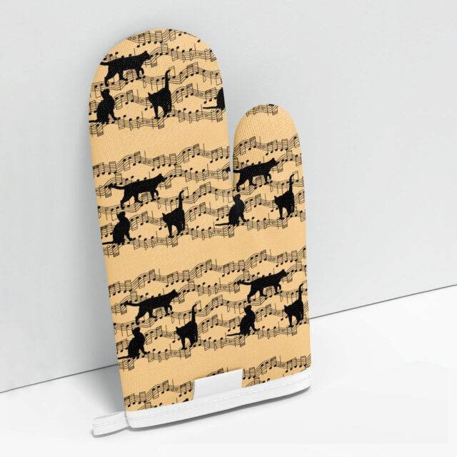 Black Cats Oven Mitt – Music Oven Glove – Notes Cooking Gloves