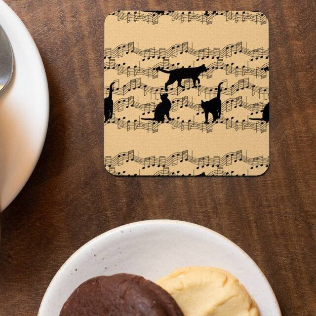 Black Cats Square Coasters – Music Coaster – Notes Coasters for Drinks