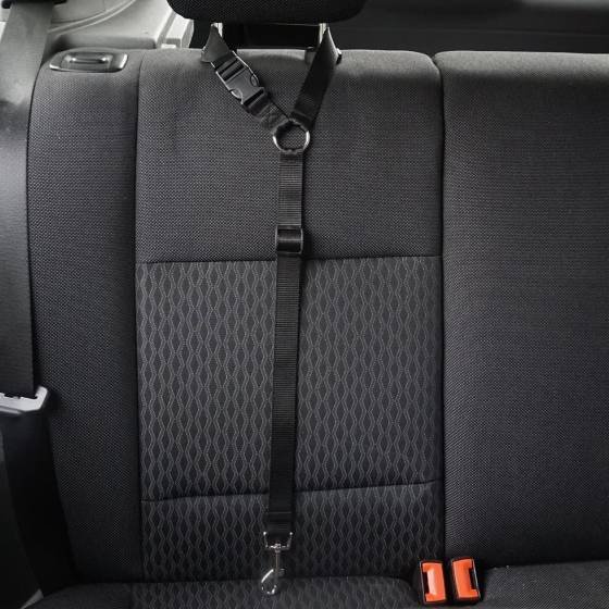 It is better for our dog and vehicle than seat belts that fasten into a seat belt slot. Those release if the button is pushed - like when a dog steps on it. This attachment to the headrest does not have that problem. Easy to attached/remove from the headrest if necessary but holds a dog in the backseat properly. No jumping out a window or open door; no injury from being thrown into the front seat if there's a sudden stop; etc. Clips onto a loop on the chest side of a vest-type collar. I wouldn't want to attach any restraint on a "choke" collar.
