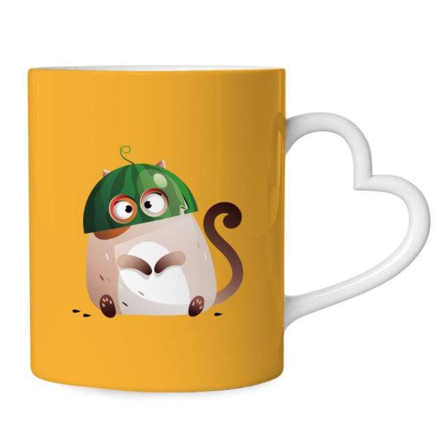 Funny Cat Mug with Heart Handle – Watermelon Mug – Colorful Ceramic Mug