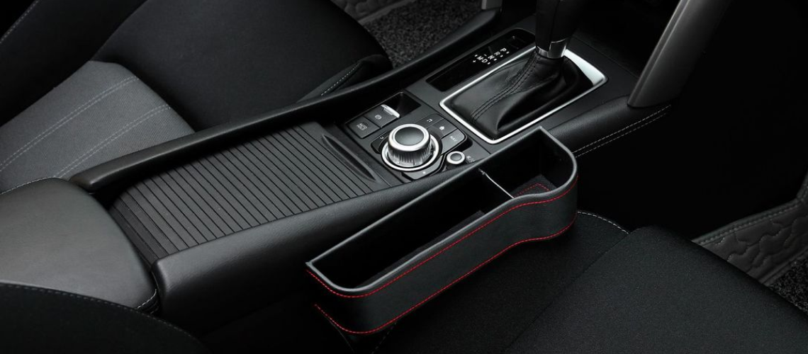 Each organizer features a phone slot, charger hole, drink holder space, and card slot for organized storage.