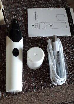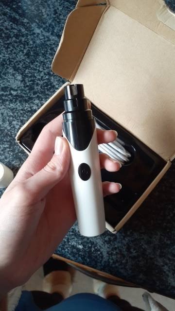 I received the nail grinder and I have used it. It really didn’t disappoint me. This nail grinder is really light, a small one. I don’t feel tired when I use it. I've used it twice. In the past, my dog just ran away as soon as when I show the nail clipper, but this time it didn't run away! There was no loud noise when I was working. I bought a nail grinder from other bands before. The noise is too loud for my dog. As soon as I turned on the switch, my dog ran away! I am very happy to have this nail grinder as a good helper for my dog grooming