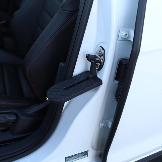 Amazing quality and design! I am 5’1” and bought a rooftop box for my vehicle... how in the world can I reach it without lugging around a step stool for the rest of my life? In comes this genius door step! Holds up to 400lbs, and I believe that. I can fit both feet on the step, enough to feel sturdy. Side note - on my vehicle at least (2016 Hyundai Tucson), the front door jamb is pretty vertical, while the back is at an angle. I would not use this on the rear doors, because I feel like weight would crumple the skin of my car, and not because of bad product design but rather just because of the angle itself. Don’t hesitate if you’re thinking about buying this!