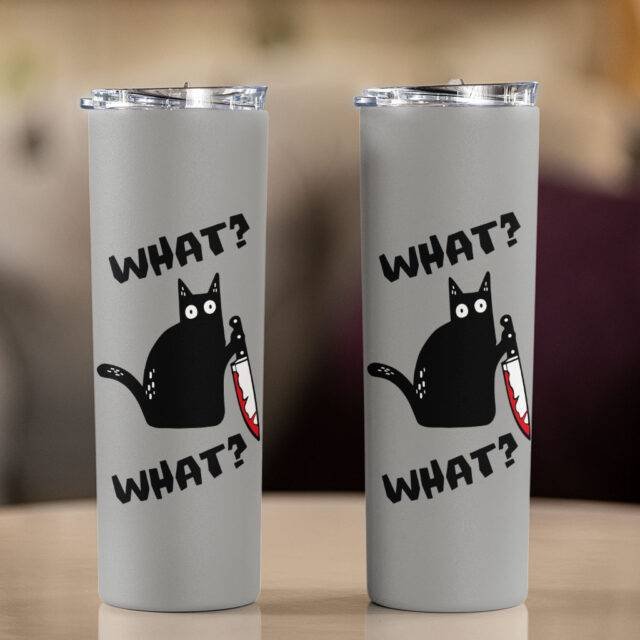 What Cat 20oz Skinny Tumbler – Maniac Travel Mug – Funny 20oz Skinny Tumbler