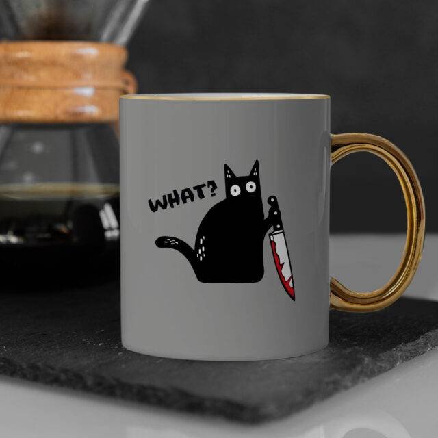 What Cat Mug – Maniac Gold Rim and Handle Mug – Funny Mug