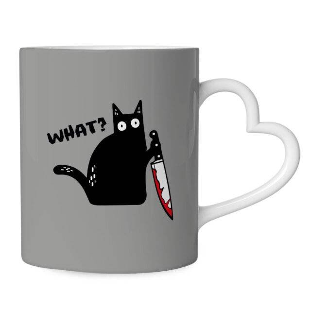 What Cat Mug with Heart Handle – Maniac Mug – Funny Ceramic Mug